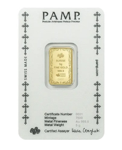 PAMP 5 Gramm Goldbarren - PAMP Cross of Christianity - Christliches Kreuz**