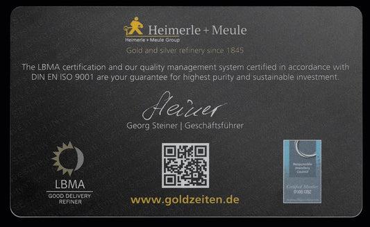 Heimerle + Meule Goldbarren – 0,5 Gramm Secain Card - Fine Card 999,9 Gold 🪙 **No reviewsNormaler Preis €63,00 EURNormaler PreisGrundpreis €63,00 / pro g