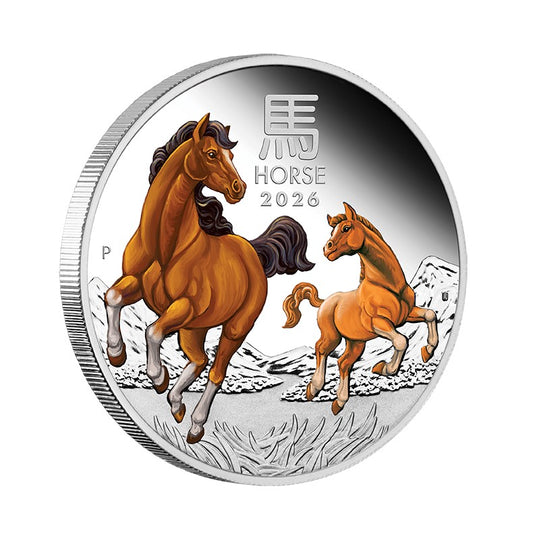 Australien - 1 AUD 🐎 Lunar Serie III – Pferd 2026 - 1 Oz Silber PP Color Perth MIntNo reviewsNormaler Preis €128,00 EURNormaler PreisGrundpreis / pro-
