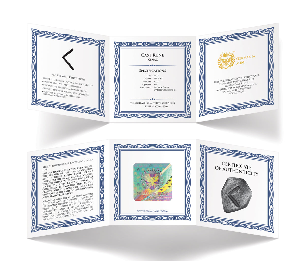 Germania Mint 1 oz Silberbarren Runes Collection Hellblau: Kenaz