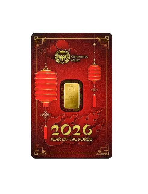 Goldbarren 1 Gramm Germania Mint Year of the Horse im Blister**